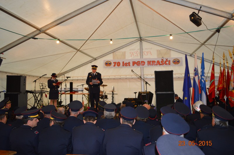 23. 5. 2015, ob 18:00 uri smo pri Gasilsko – vaškem domu v Kraščih svečano proslavili 70. Obletnico PGD Krašči. Pripravili smo krajši kulturni program, kjer so nas nagovorili povabljeni gosti, podelili smo odlikovanja in priznanja najzaslužnejšim članom društva nato pa je še sledila veselica z Ansamblom Donačka in skupino One Moment. Kljub neugodnemu vremenu (bilo je mrzlo in več dni je padal dež) je prireditev uspela in smo bili pohvaljeni za uspešno pripravljeno in izvedeno 70. obletnico.