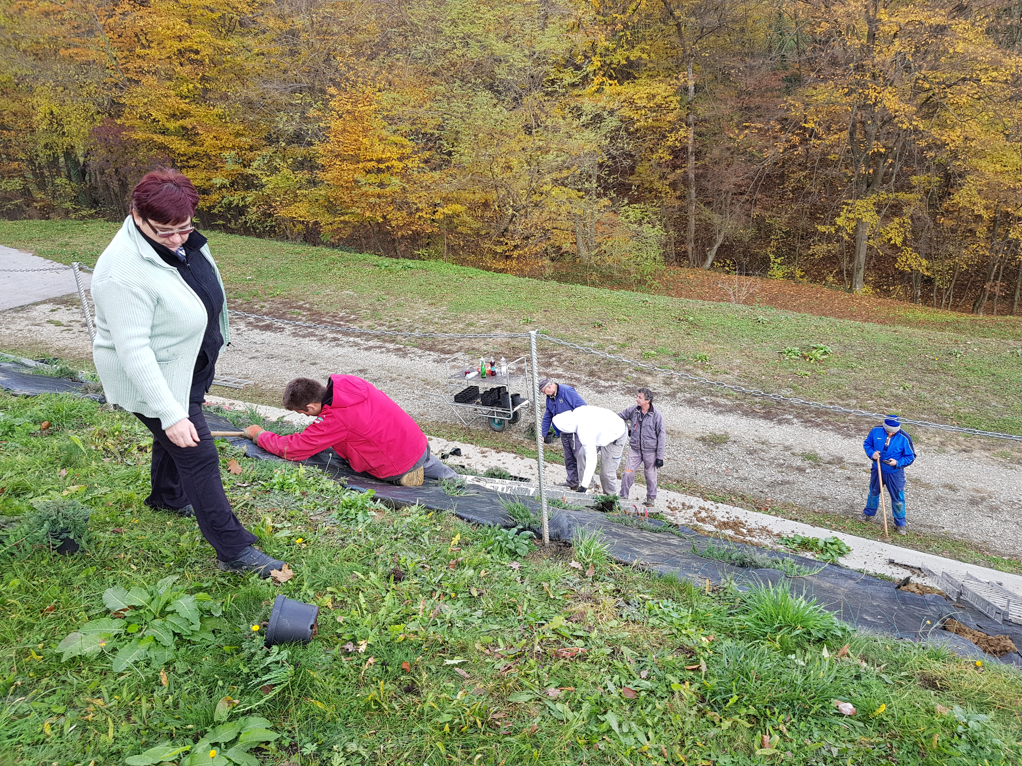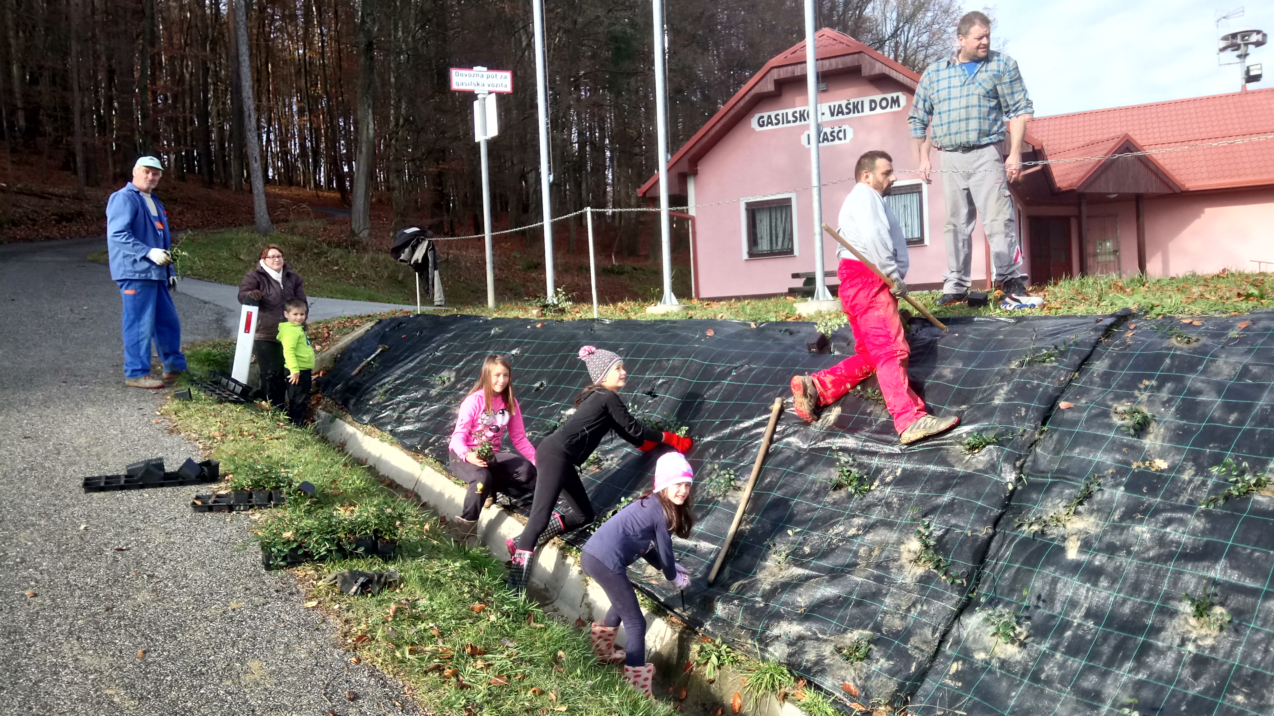 V začetku aprila je Občina Cankova odstranila travo s škarpe ob gasilskem domu in v sredini maja so javni delavci Občine Cankova namestili folijo na škarpo in tako pripravili vse potrebno za saditev trajnic. 10. 11. 2017 je bil začetek sajenja trajnic na škarpo pri gasilsko – vaškem  domu Krašči. Sajenje smo opravili skupaj z vaščani Krašč in Občino Cankova, ki je trajnice tudi financirala. 18. 11. 2017 smo s sajenjem trajnic tudi zaključili.